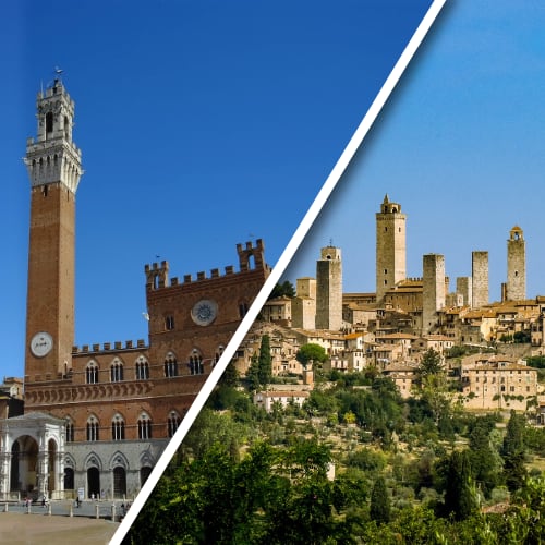 L’escursione di Siena e San Gimignano prevede la partenza da Firenze (presso la struttura in cui si alloggia: Hotel o Appartamento) alle ore 9am e un rientro alle 5pm. La durata totale, incluso il trasporto, e di circa 8 ore. Entrambe possono essere visitate autonomamente ma qualora si desiderasse un approfondimento storico e una visita più completa suggeriamo di farlo con una Guida Autorizzata locale (ad un costo aggiuntivo, prenotatile sempre con noi) tutto il giorno (entrambe le città) o mezza giornata (una delle due).